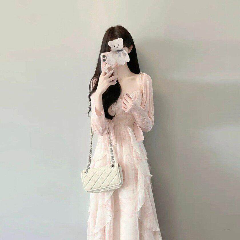 法式度假超仙森系连衣裙套装2024新款温柔风针织开衫吊带裙两件套