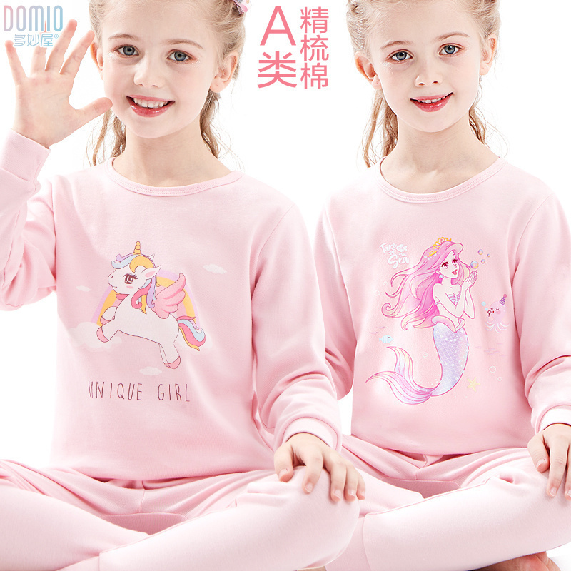 猫人秋衣秋裤女童纯棉春秋大童女孩儿童内衣套装全棉毛衫线衣线裤