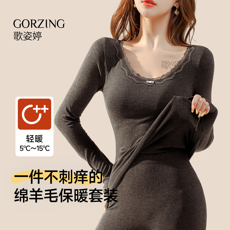 保暖内衣女秋衣秋裤套装2025新款绵羊毛带胸垫德绒秋冬内搭打底杉