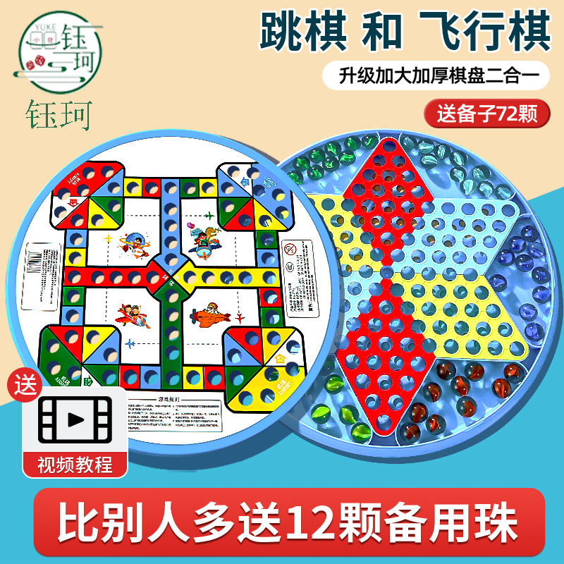 跳跳棋儿童益智小学生玻璃球跳棋大人版老式飞行棋二合一弹珠跳子