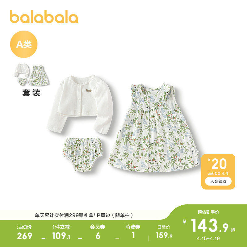 巴拉巴拉童装儿童套装女童裙子三件套夏装2026休闲甜美萌时尚百搭