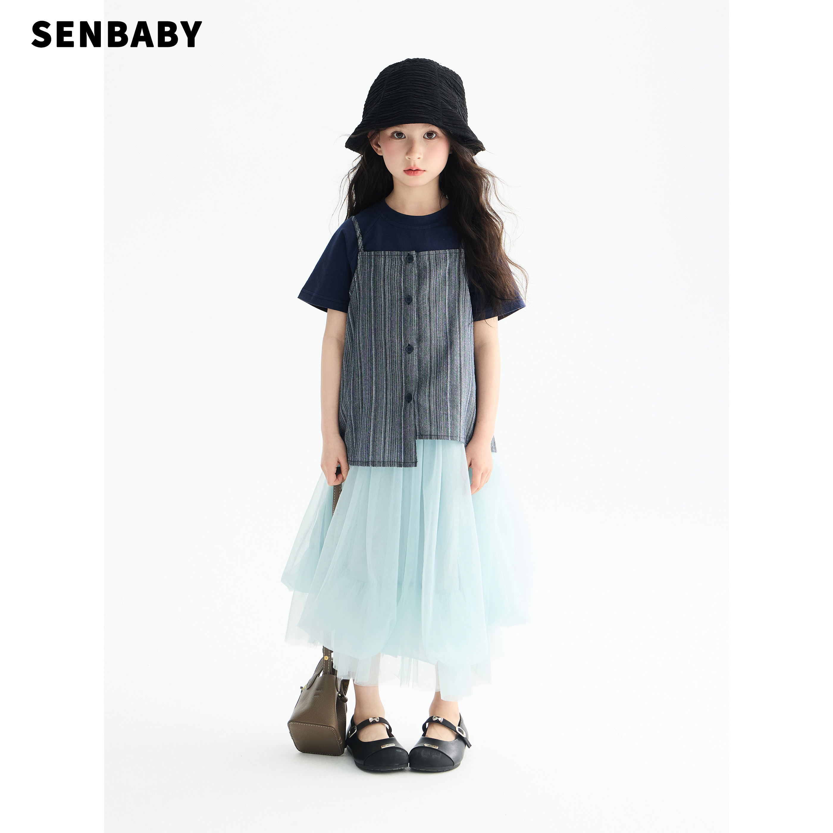 【现货】senbaby童装女童短袖T恤外穿吊带两件套儿童纱裙三件套