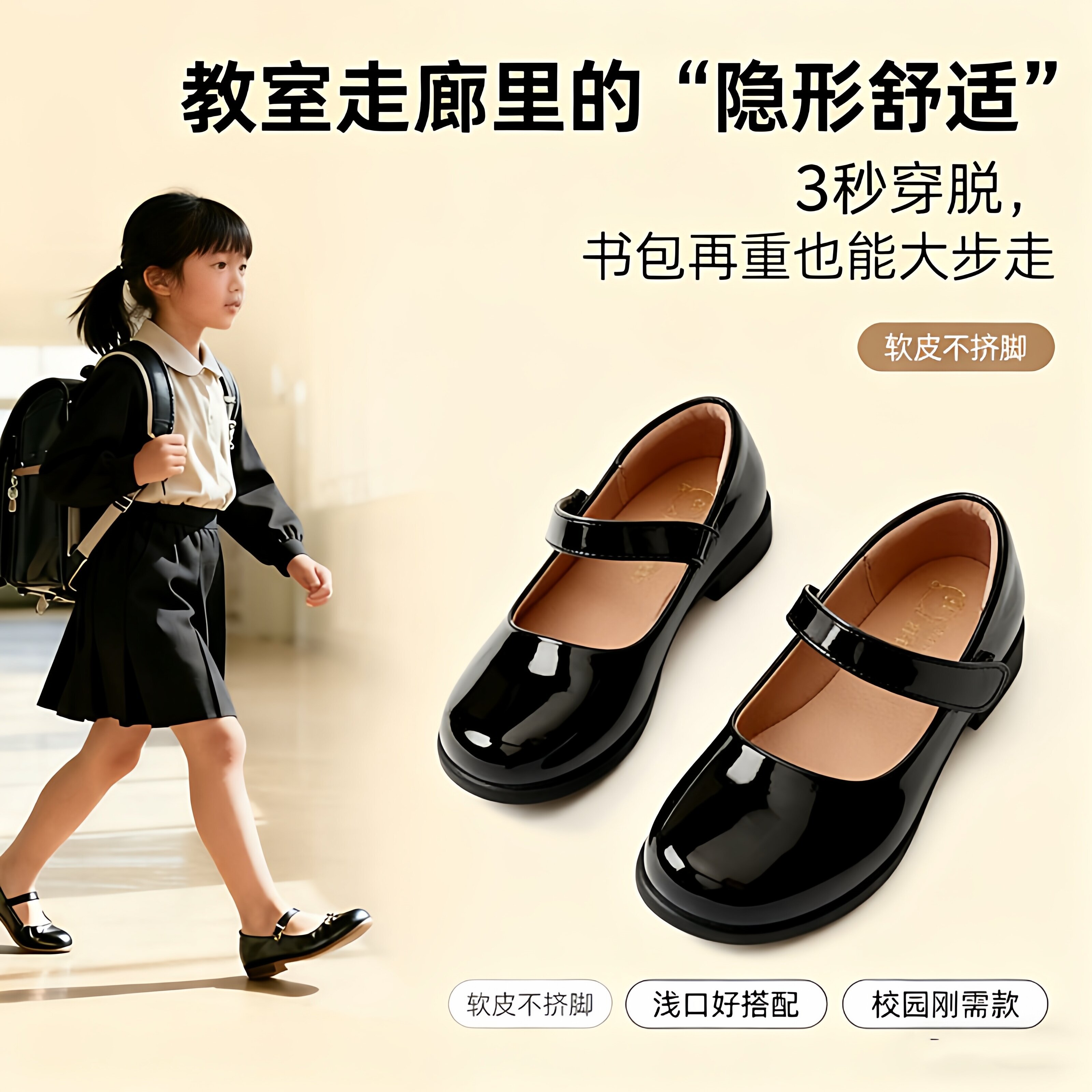女童皮鞋2025春夏新款儿童黑色皮鞋韩版时尚简约百搭学生单鞋洋气