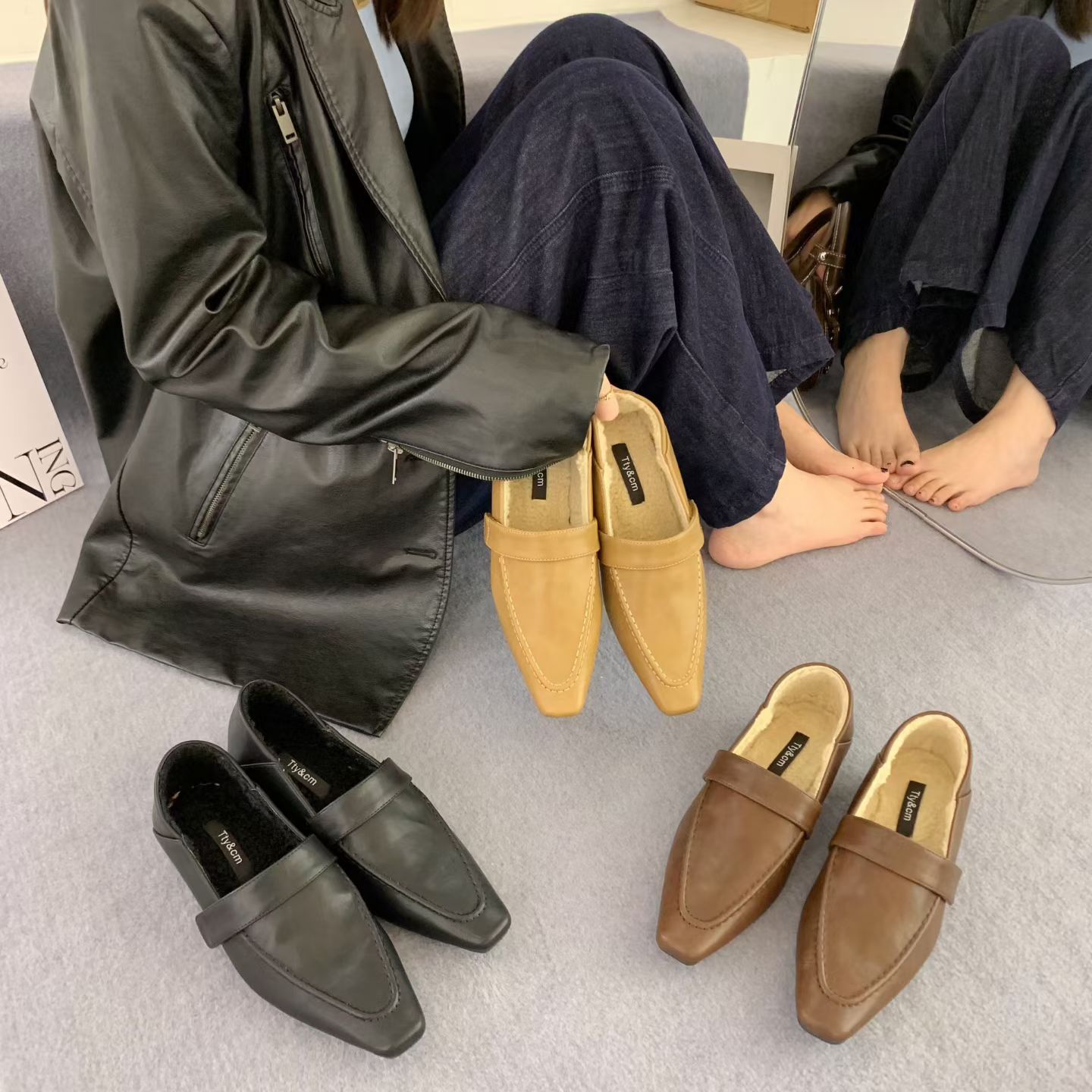 自留怒推!韩版chic复古百搭一脚蹬小皮鞋pu单鞋学生乐福鞋女