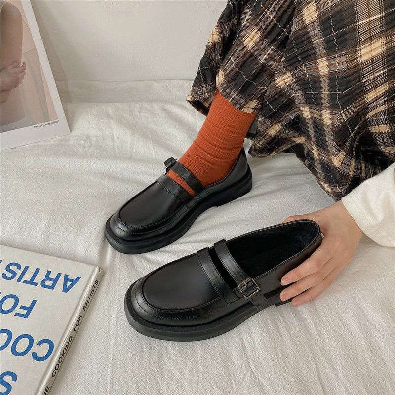 21秋季新款韩版百搭一脚蹬洛丽塔复古学生平底厚底jk小皮鞋女单鞋