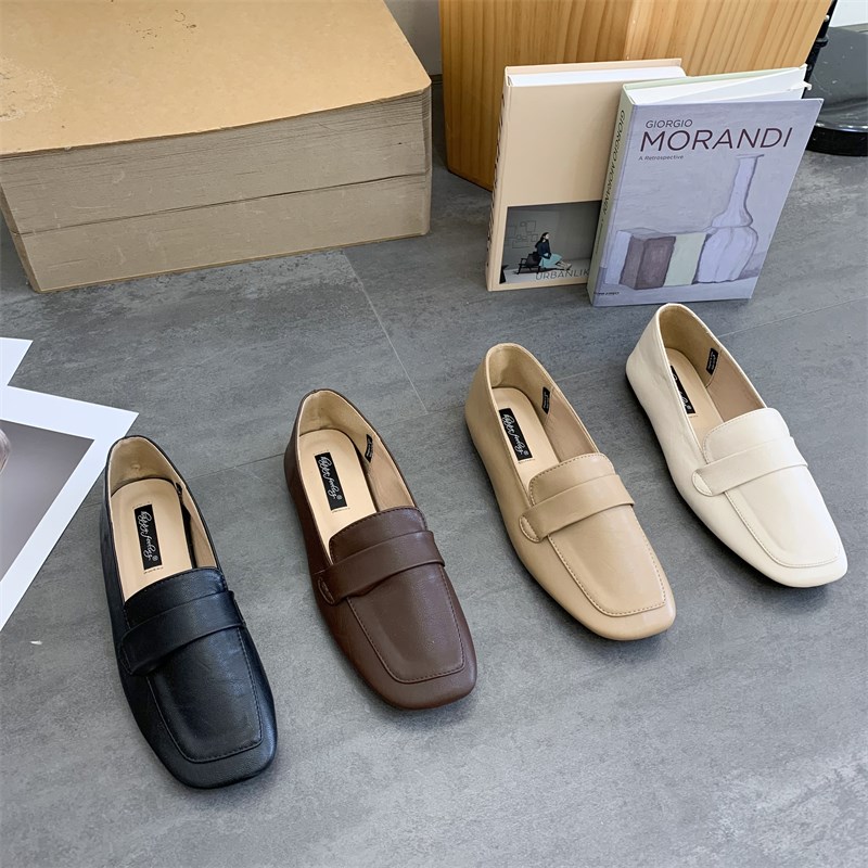 英伦小皮鞋女学生百搭韩版2025年秋新款方头一脚蹬豆豆鞋软底单鞋