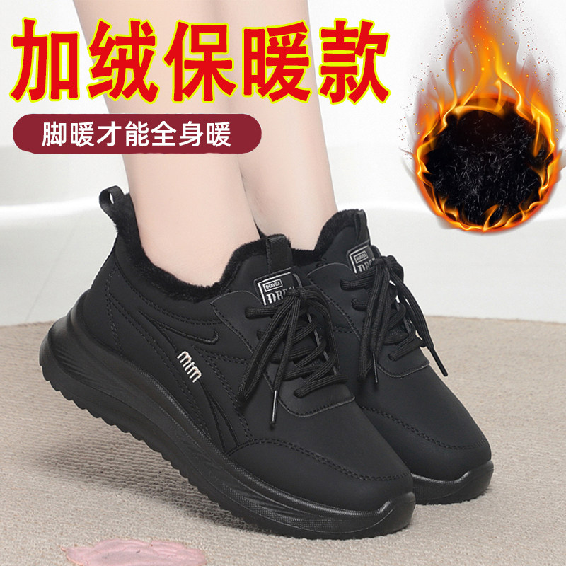 冬季新款中老年人棉鞋女加绒保暖百搭休闲运动鞋加厚防滑妈妈棉靴