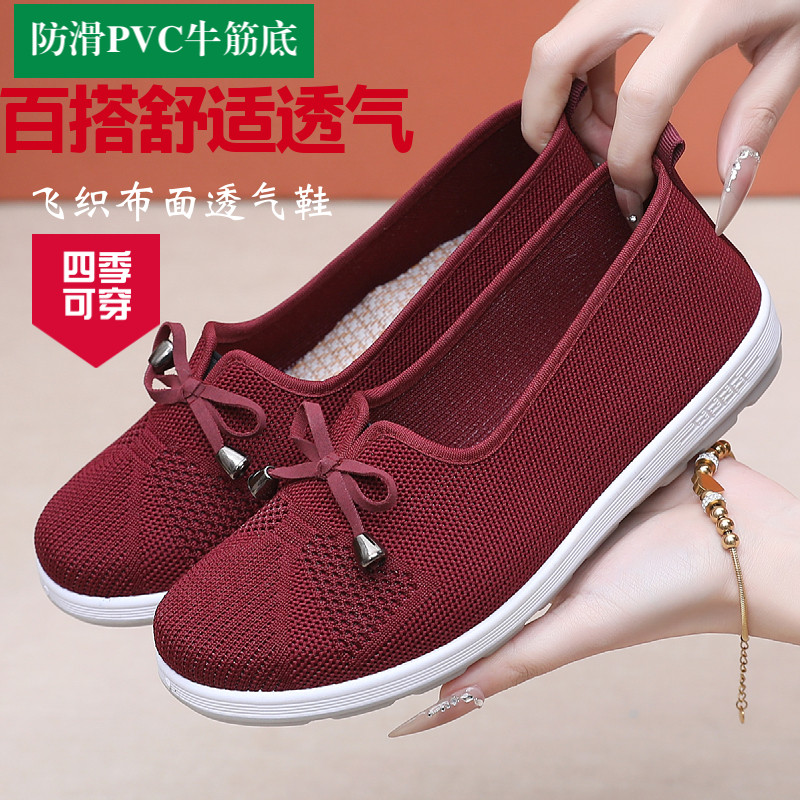 老北京布鞋女新款夏季飞织网鞋透气网面中老年人运动防滑妈妈凉鞋