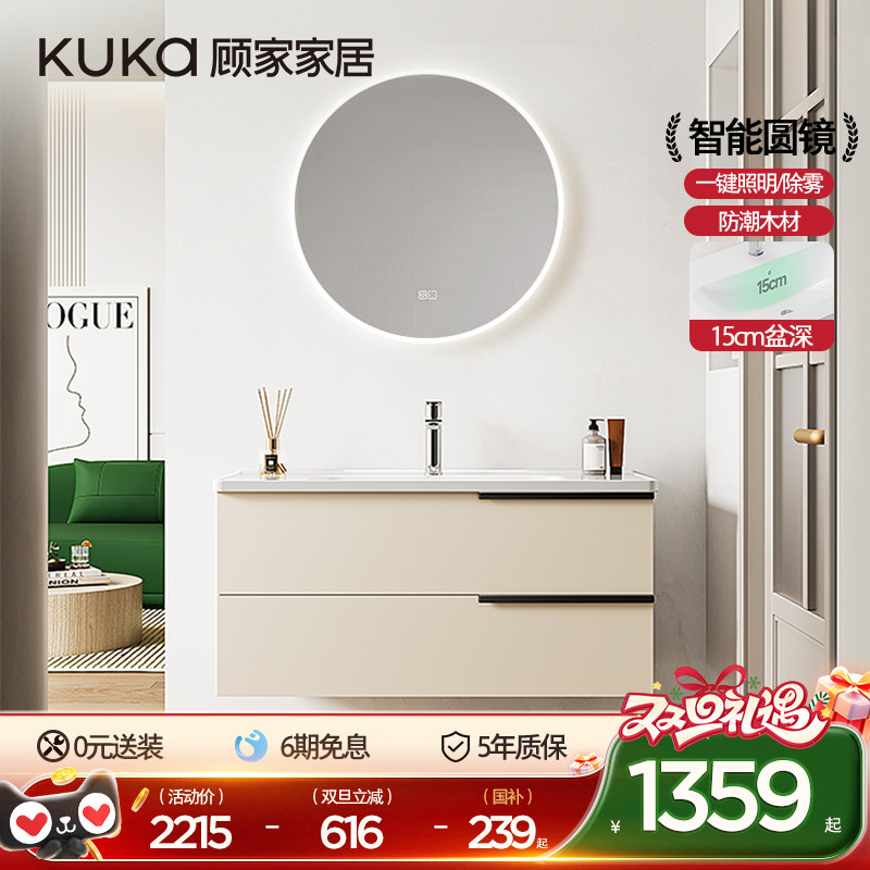 顾家家居陶瓷一体盆浴室柜卫生间洗脸盆柜组合现代风洗漱台卫浴柜