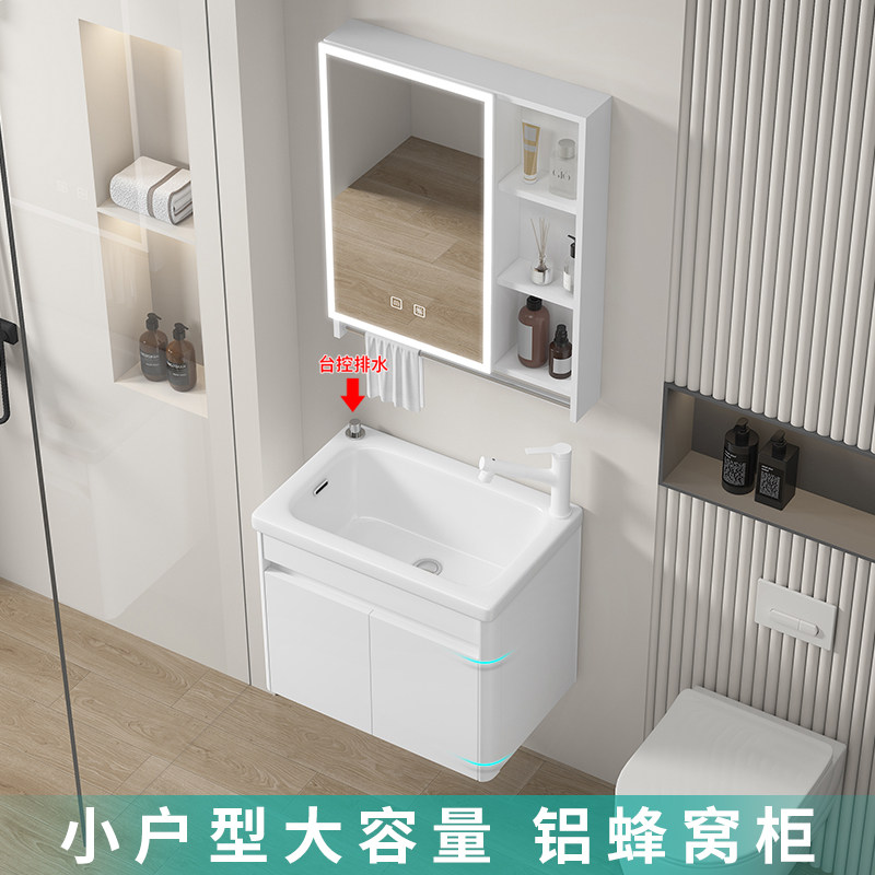 小户型铝台控下水蜂窝全铝浴室柜卫生间洗脸盆柜组合防水小洗手盆