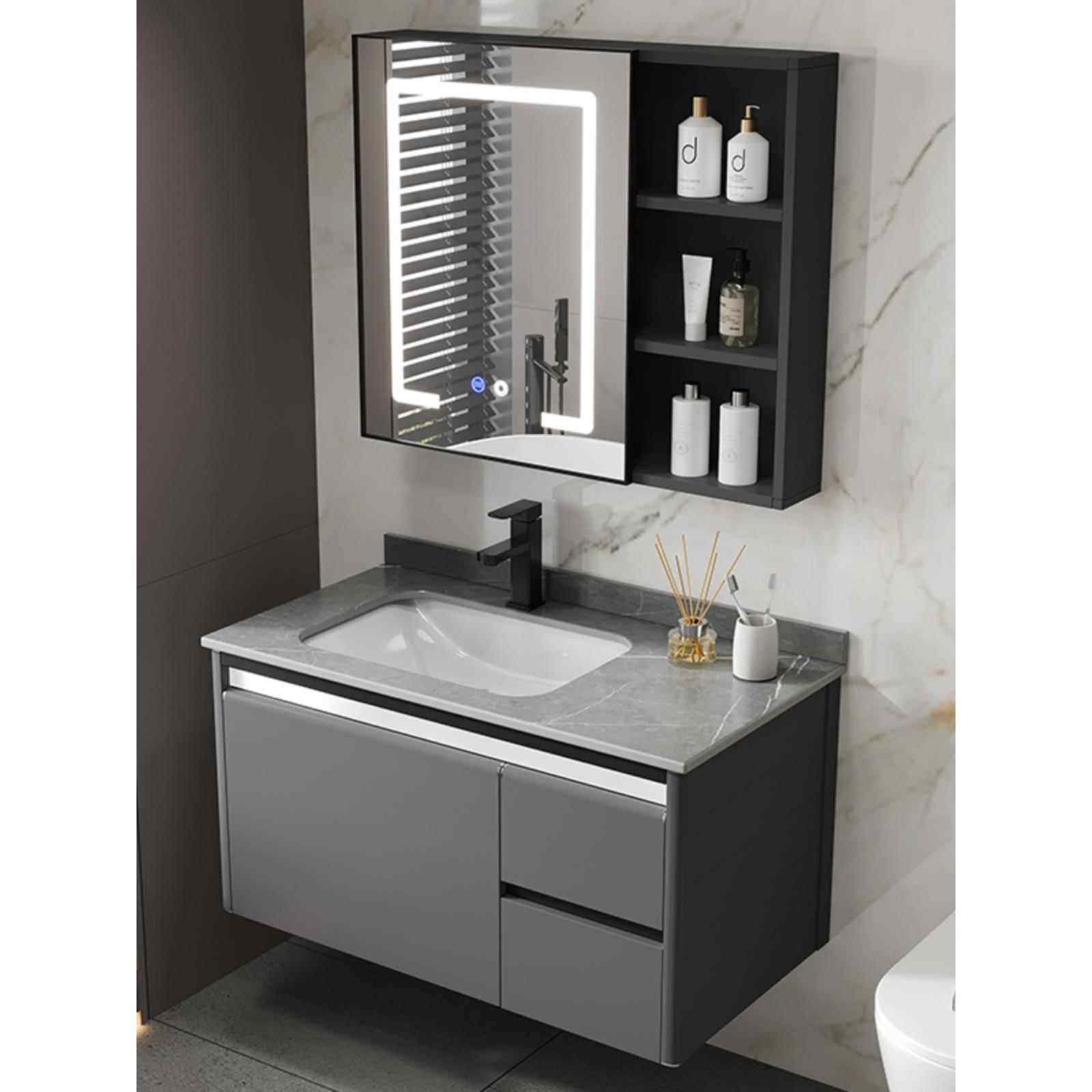 卫生间洗脸盆柜组合太空铝岩板浴室柜洗手盆洗漱台卫浴面池智能镜