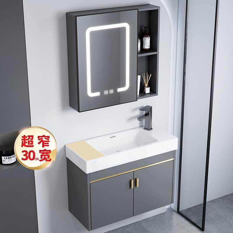 卫生间洗脸盆柜组合太空铝小户型浴室柜一体陶瓷洗手盆极窄洗漱台