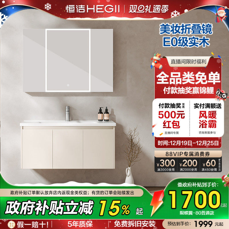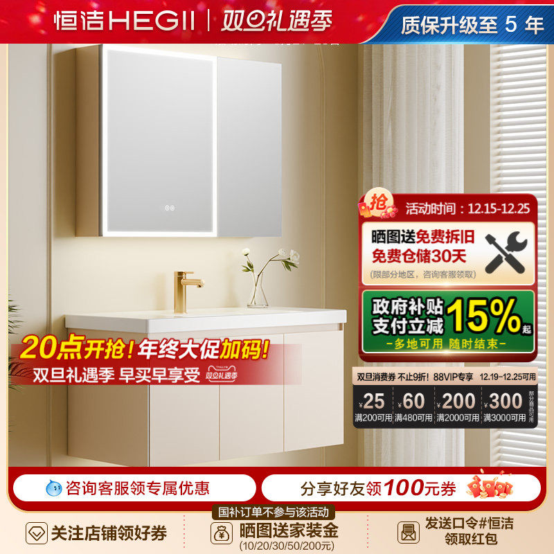 [百亿补贴]恒洁浴室柜陶瓷一体盆卫生间洗脸盆柜组合洗漱台镜柜