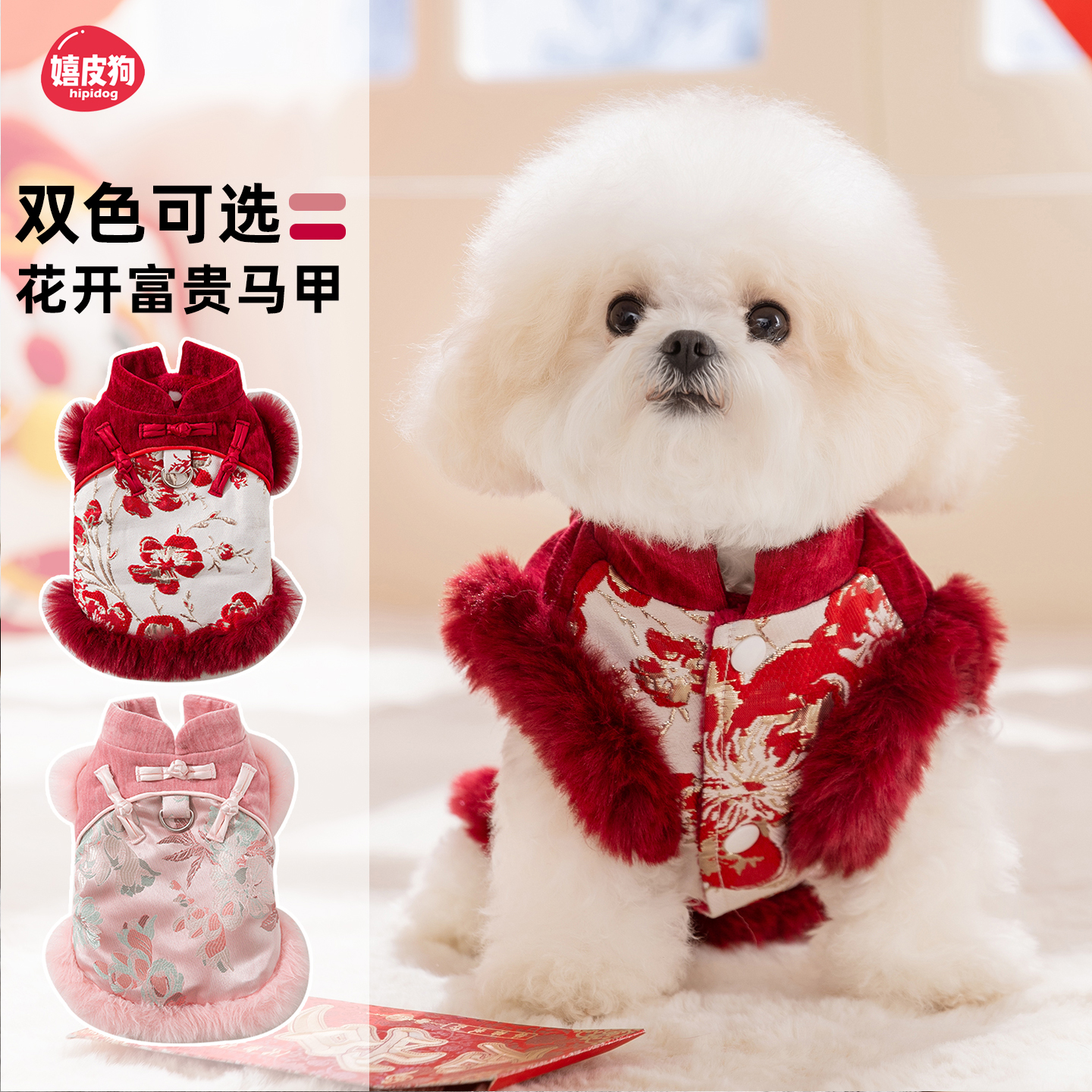 狗狗新年衣服2025新款冬装比熊泰迪雪纳瑞圣诞小型犬宠物小狗衣服