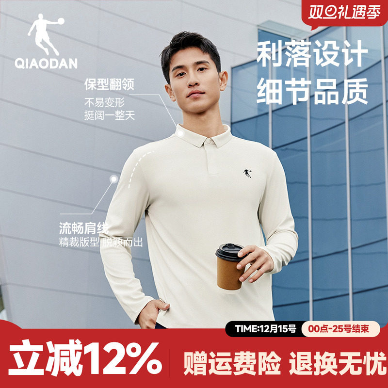 乔丹速干长袖POLO衫男士2025秋季新款商务休闲运动白色T恤男上衣