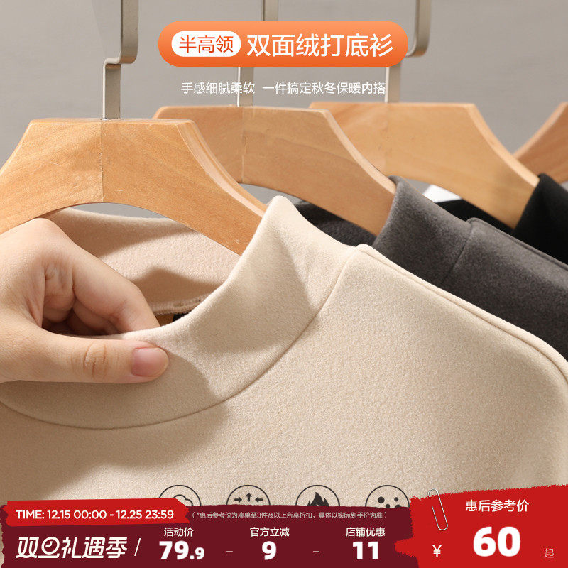 德绒打底衫女冬季保暖磨毛长袖加绒白色双面内搭T恤秋冬女装上衣