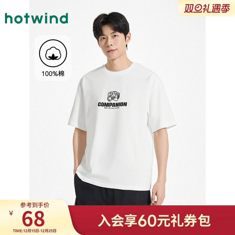 热风男士短袖T恤上衣白色T恤2025年夏季新款相机图案宽松百搭T恤