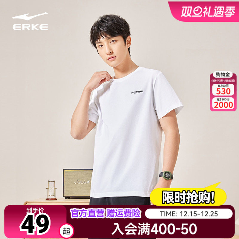 鸿星尔克短袖男夏季新款男士上衣半袖运动男装男生棉感白色t恤男