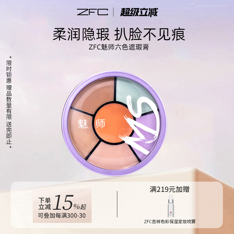 zfc魅师六色遮瑕膏 遮盖黑眼圈痘印雀斑保湿粉底膏化妆师专用正品
