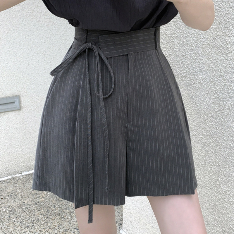 韩国chic秋冬复古小众高腰百搭显瘦休闲竖条纹A字裙裤西装短裤女
