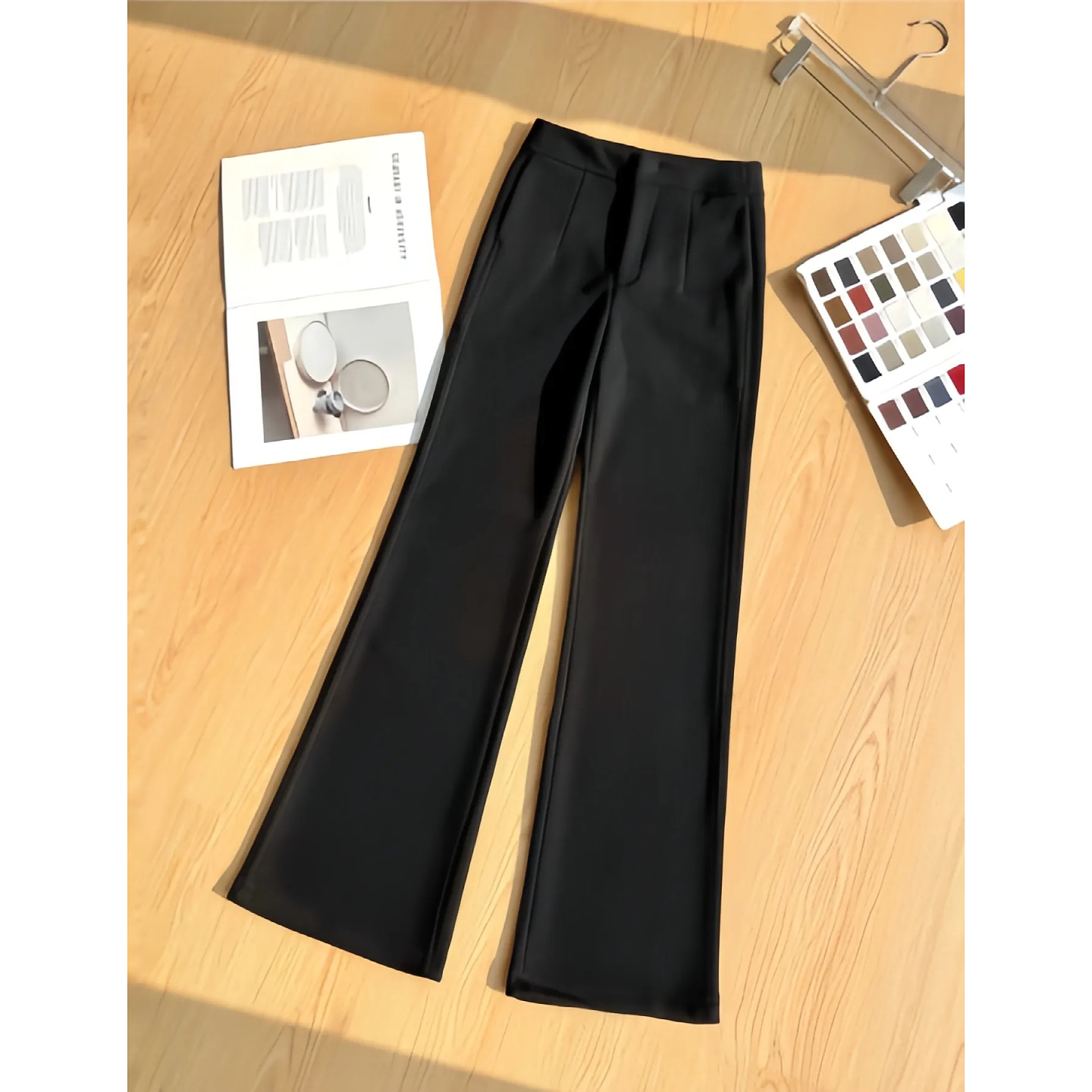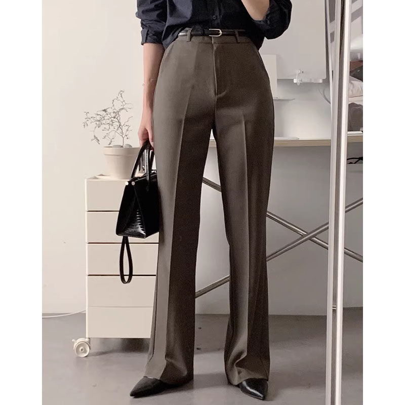韩国chic春季新款气质轻熟风百搭弹力阔腿微喇叭休闲西装裤长裤女