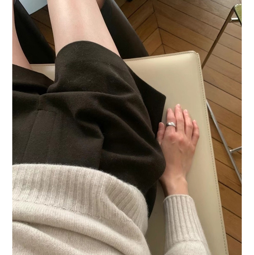 秒发!羊毛西装短裤女春秋冬韩国OUNCE半松紧腰宽松显瘦A字阔腿裤