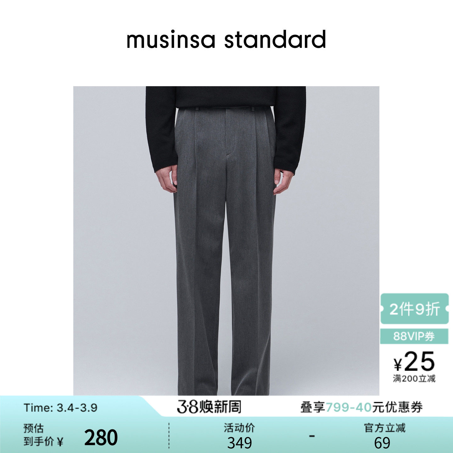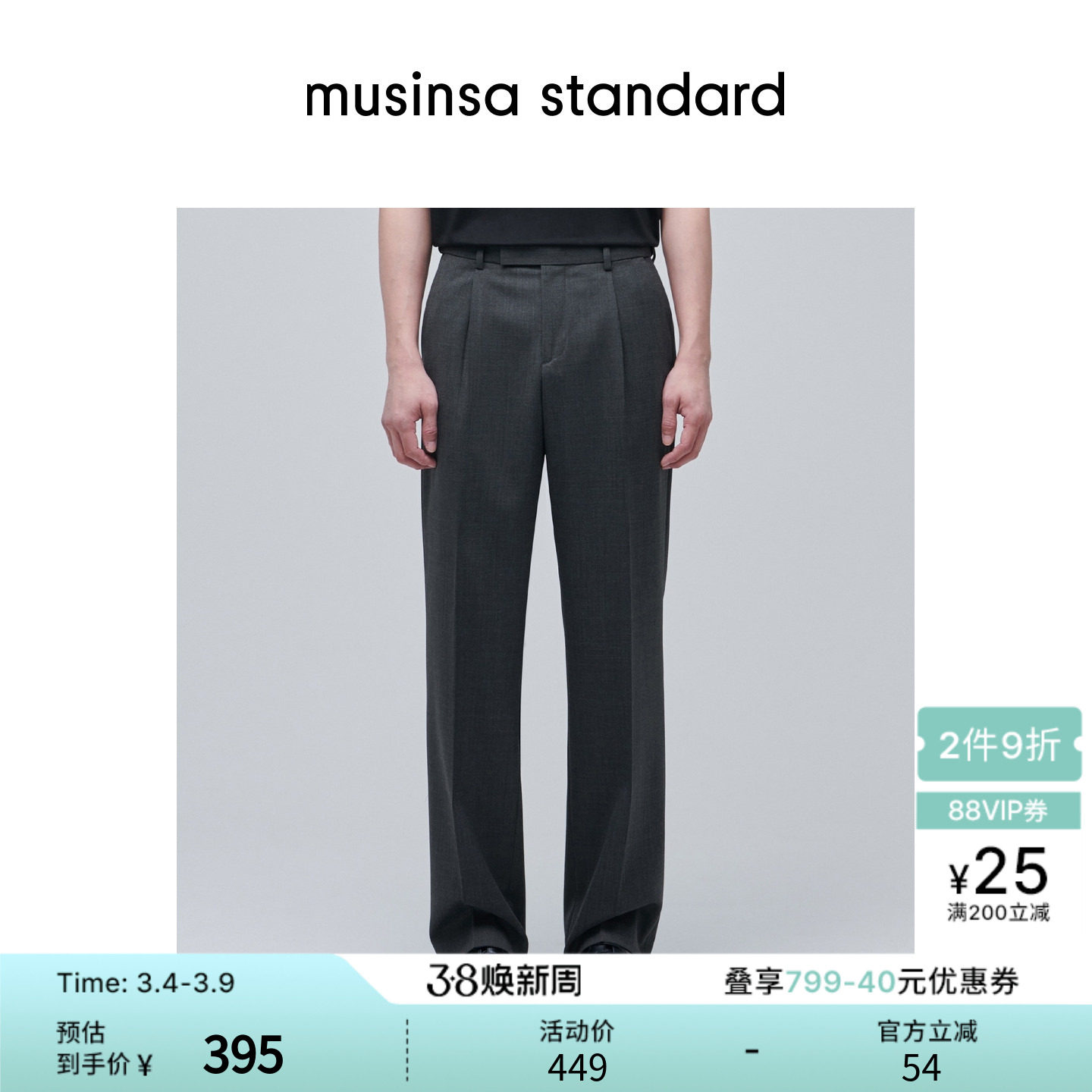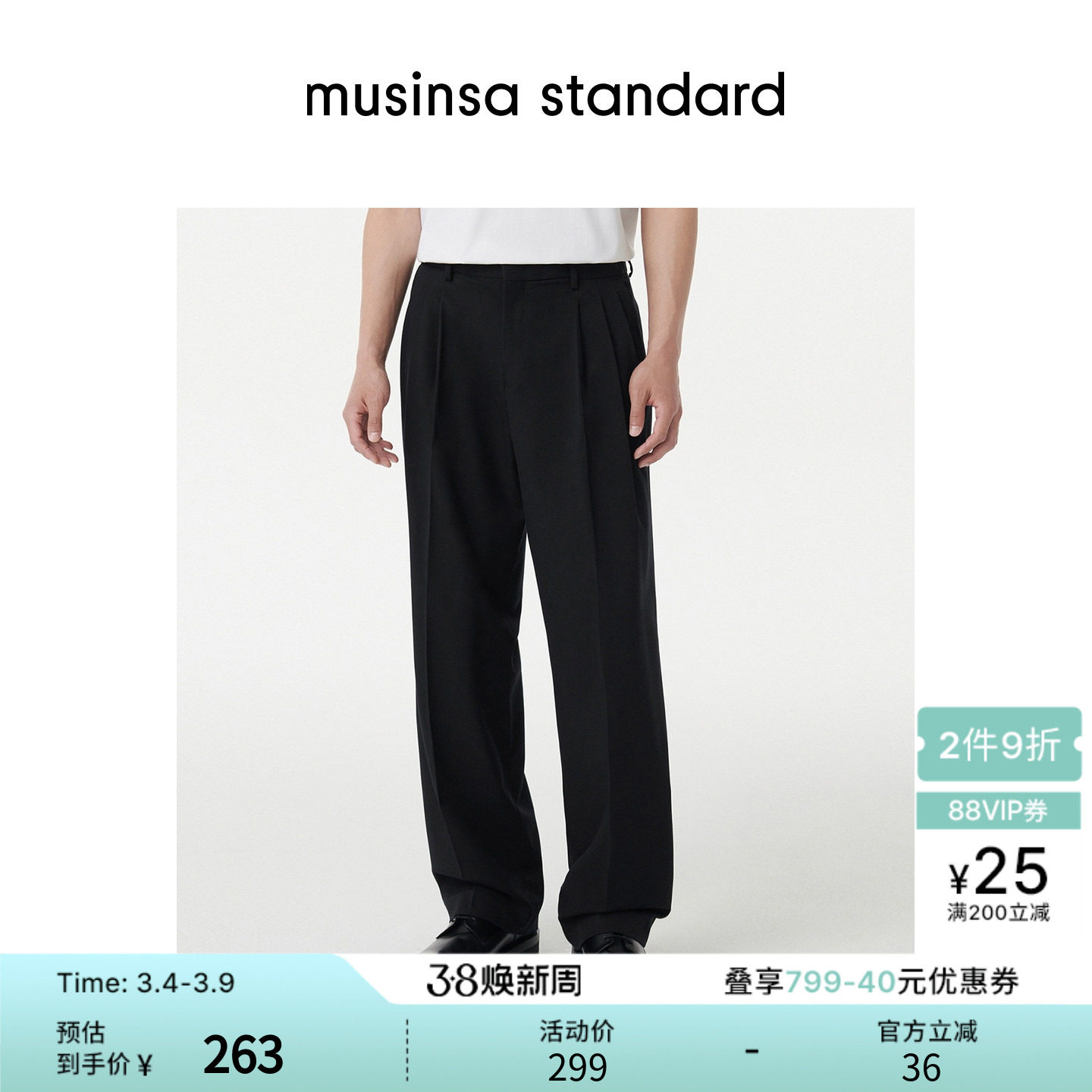 韩国春季男士百搭褶皱设计宽松弹力西装裤musinsa standard