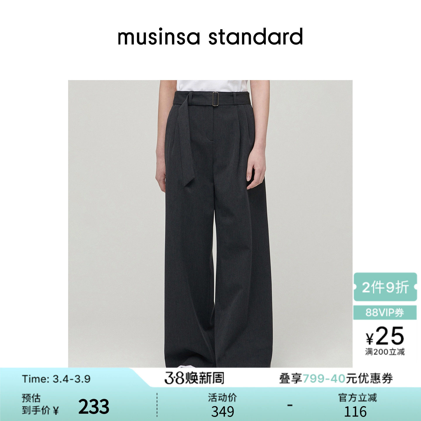韩国春季女士百搭超宽可拆卸腰带式休闲西装裤musinsa standard