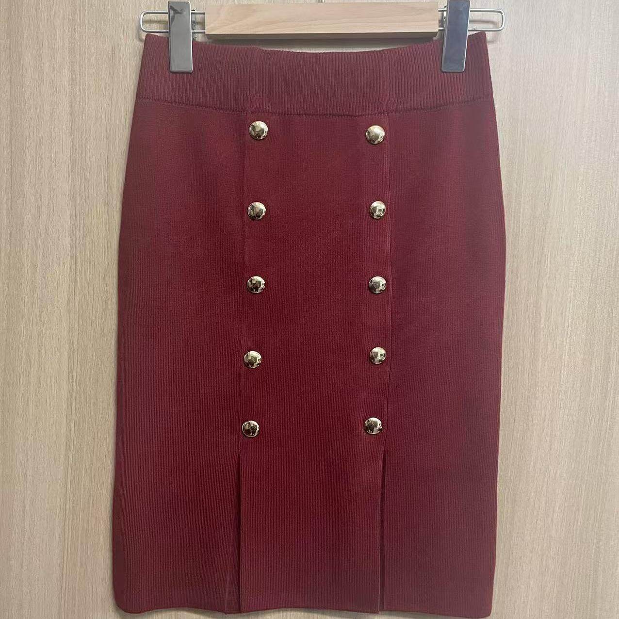 中长款针织半身裙女学院一步包臀裙秋冬高腰加厚开叉毛线裙子扣子
