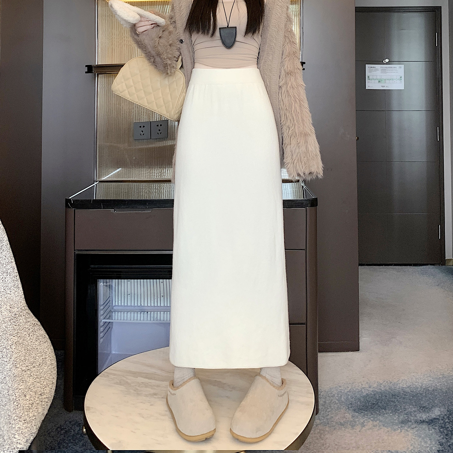 兔绒针织毛线包臀高腰显瘦开叉过膝直筒半身一步长裙子秋冬加厚女