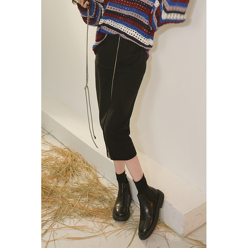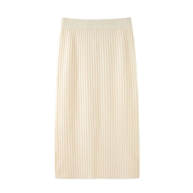ATAR清货 高级感后开叉针织中长半身裙 秋冬冬装坑条显瘦包臀裙子