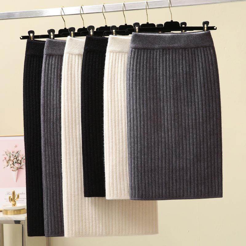 加厚不开叉针织毛线半身裙女2023新款秋冬毛线包臀裙裙子大码胖mm
