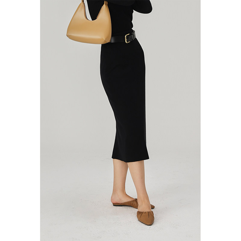 秋冬针织裙含羊毛醋酸松紧腰铅笔半身裙后开叉直筒包臀裙显瘦裙子