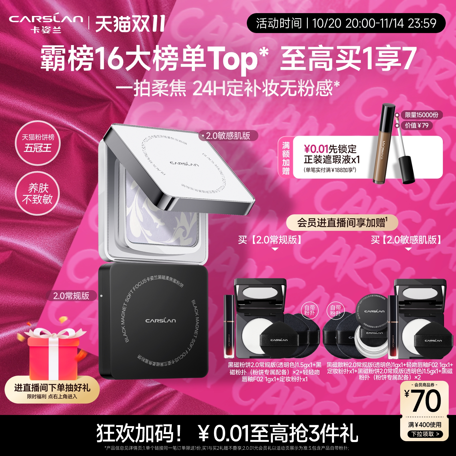 双11抢购/2.0卡姿兰黑磁散粉粉饼散粉定妆粉持久不脱妆定妆水散粉