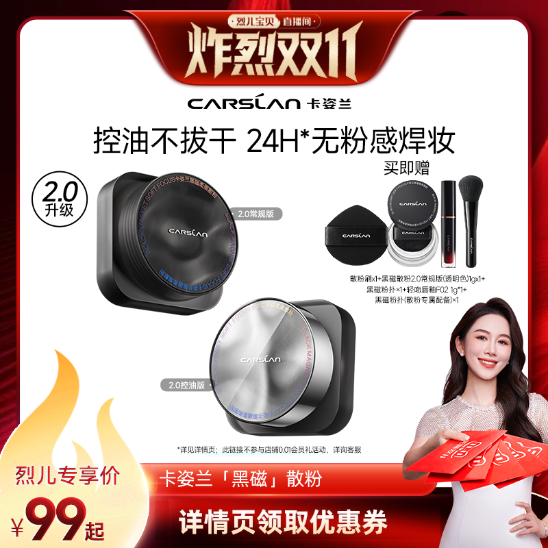 双11抢购/卡姿兰黑磁粉饼2.0升级版散粉定妆粉持久控油定妆粉饼