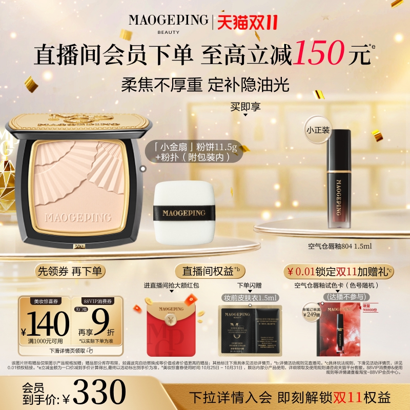 【双11立即抢购】毛戈平光感柔纱凝颜小金扇粉饼哑光散粉定妆持久
