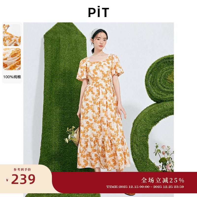 好品捡漏~夏季新款高档中长裙纯棉短袖女装遮肚减龄连衣裙女上衣