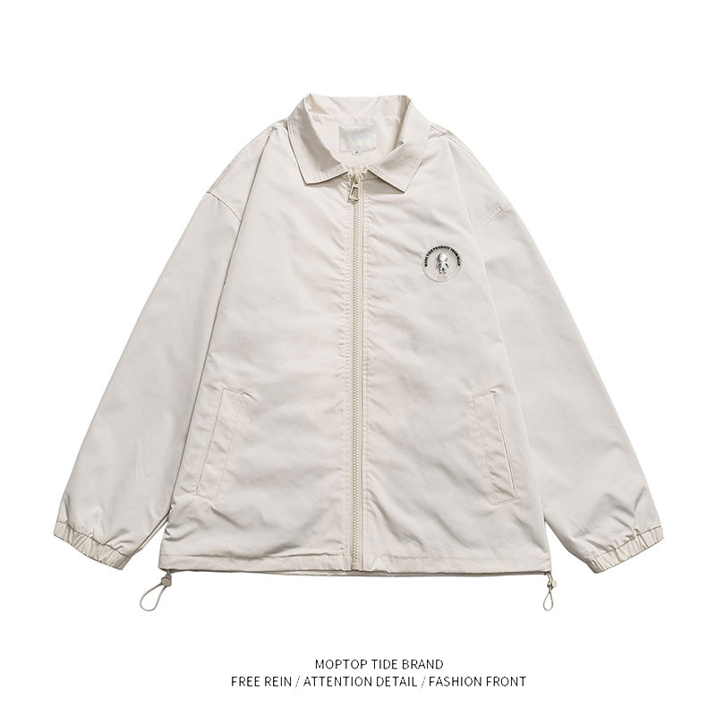 原宿风纯棉立领底特律夹克男女秋冬休闲拉链教练短款运动冲锋外套