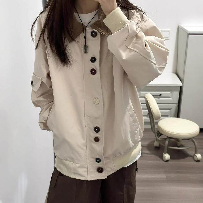 日系翻领工装夹克上衣女秋季2025新款宽松复古设计感休闲百搭外套