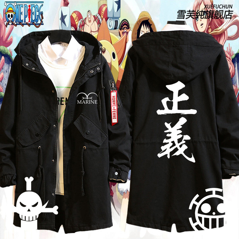 日系潮牌原宿风海贼王连帽风衣男女海军正义夹克外套休闲百搭衣服