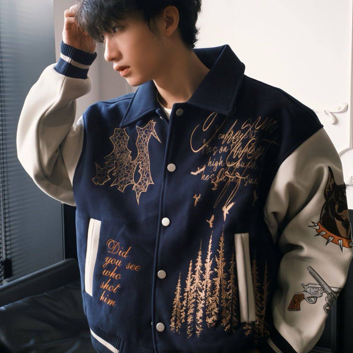 BOYUE帛跃日系原宿风刺绣麂皮绒领子可拆外套男女棒球服休闲夹克