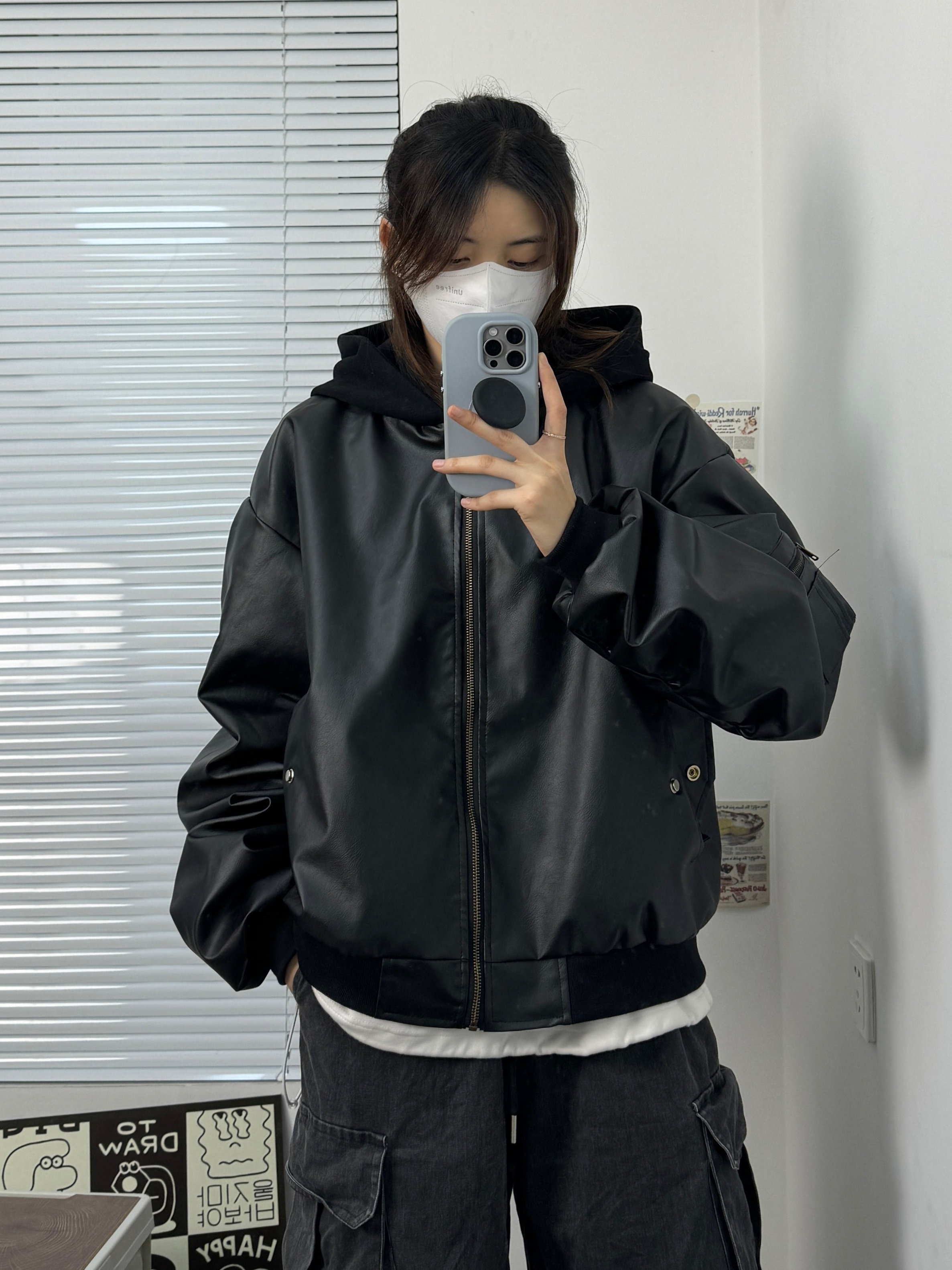DUDACK2024春秋新款宽松长袖原宿嘻哈风短款夹克加厚外套女74177