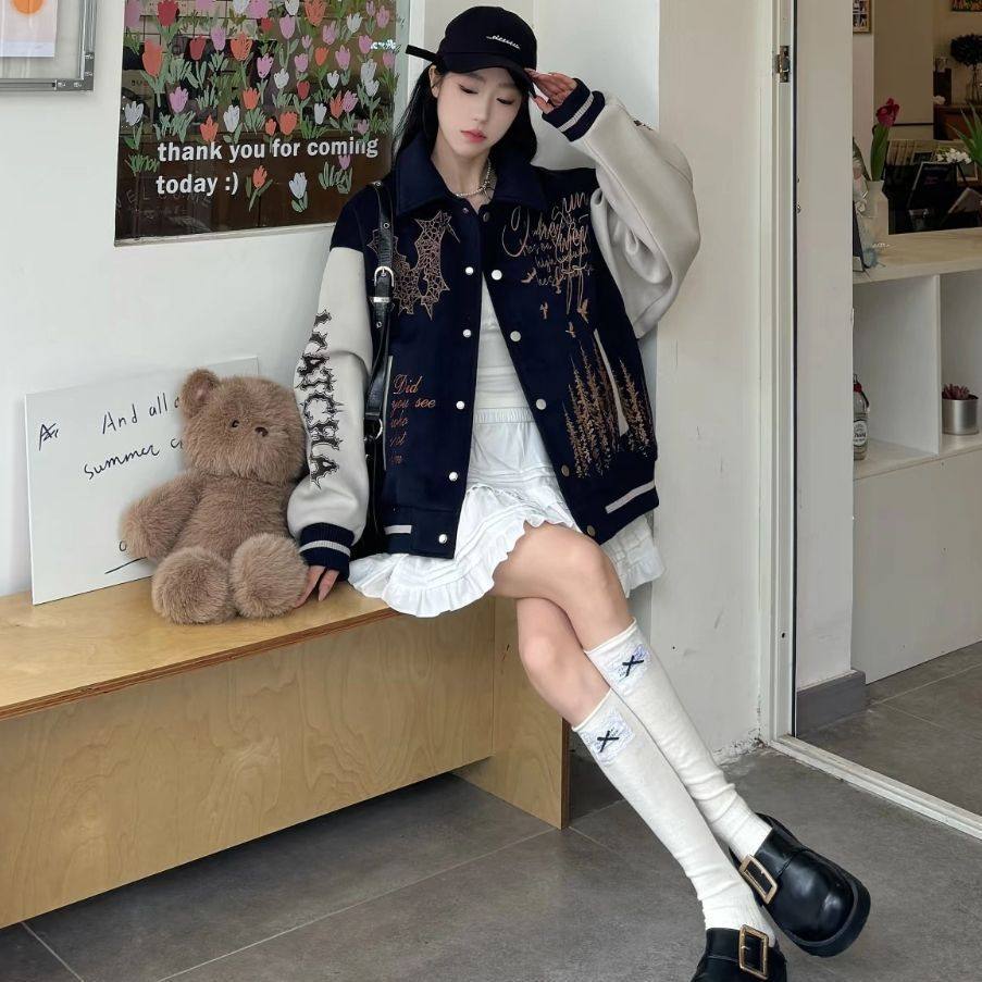 春秋季新款港风美式复古飞行夹克女原宿潮宽松帅vibe风棒球外套