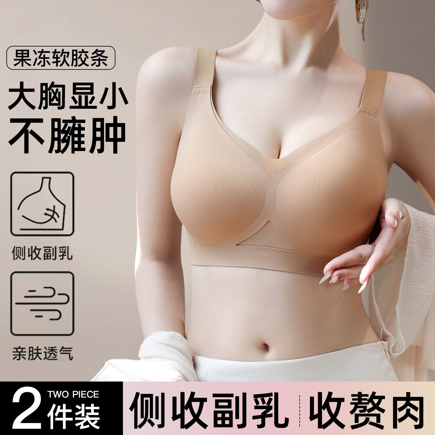 大胸显小内衣乳胶性感聚拢防下垂光面无痕文胸有软钢圈收副乳胖mm