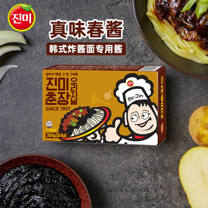 韩国炸酱面酱拌面黑酱料进口真味春酱韩式杂酱面专用酱调味料300g