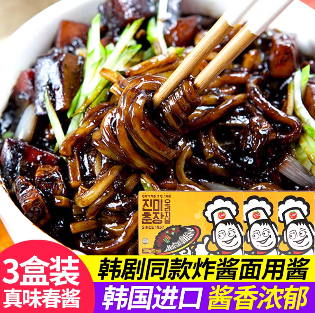 韩国炸酱面酱拌面黑酱300g*3进口真味春酱韩式炸酱面专用酱调料包