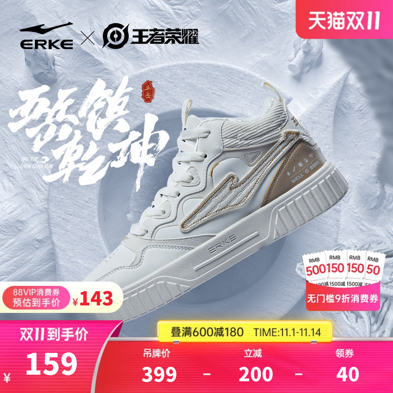 王者荣耀联名鸿星尔克男鞋高帮板鞋新款潮流休闲鞋子白色运动鞋女