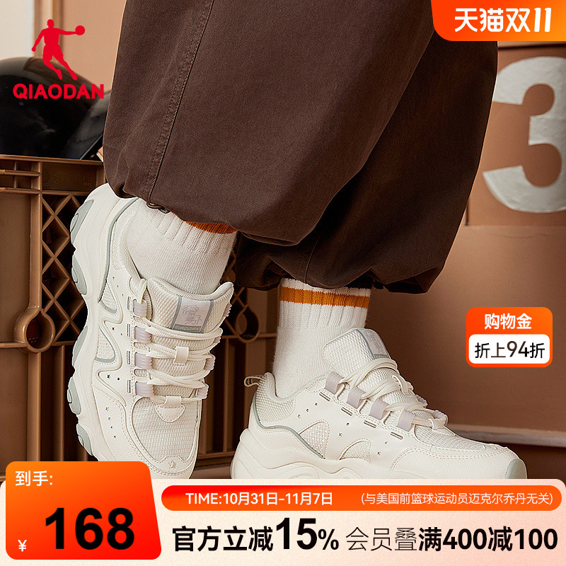乔丹休闲鞋女鞋2025秋季黑色轻便厚底增高老爹鞋白色运动鞋女鞋子