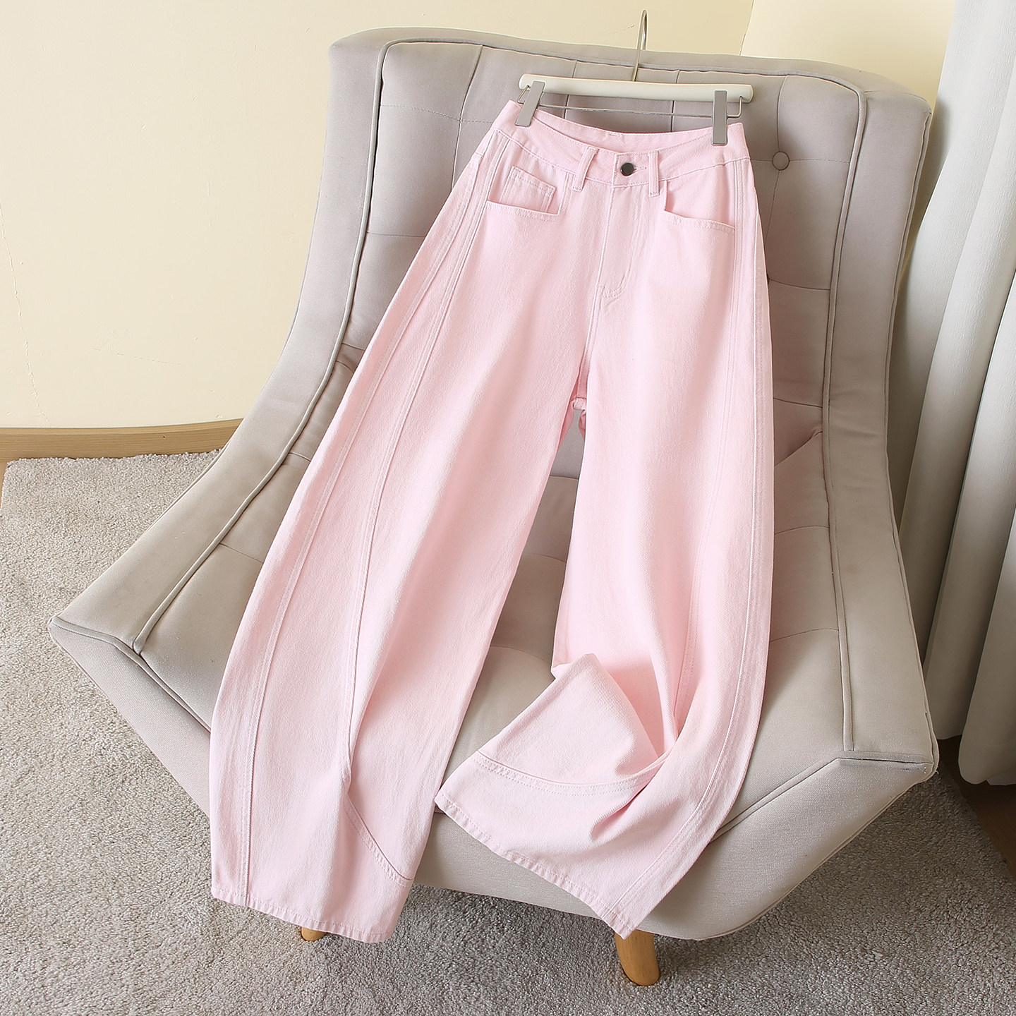 拉夏贝尔粉色牛仔裤女2026新款美式宽松显瘦多巴胺拖地阔腿裤休闲