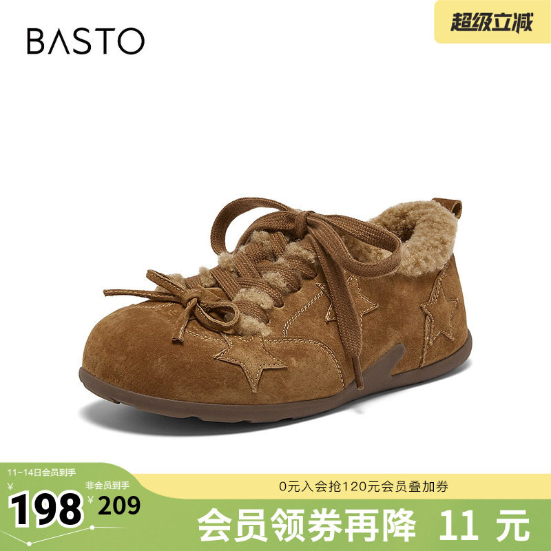 百思图秋冬季新款德训鞋时尚复古休闲运动加绒女鞋A2507DM5